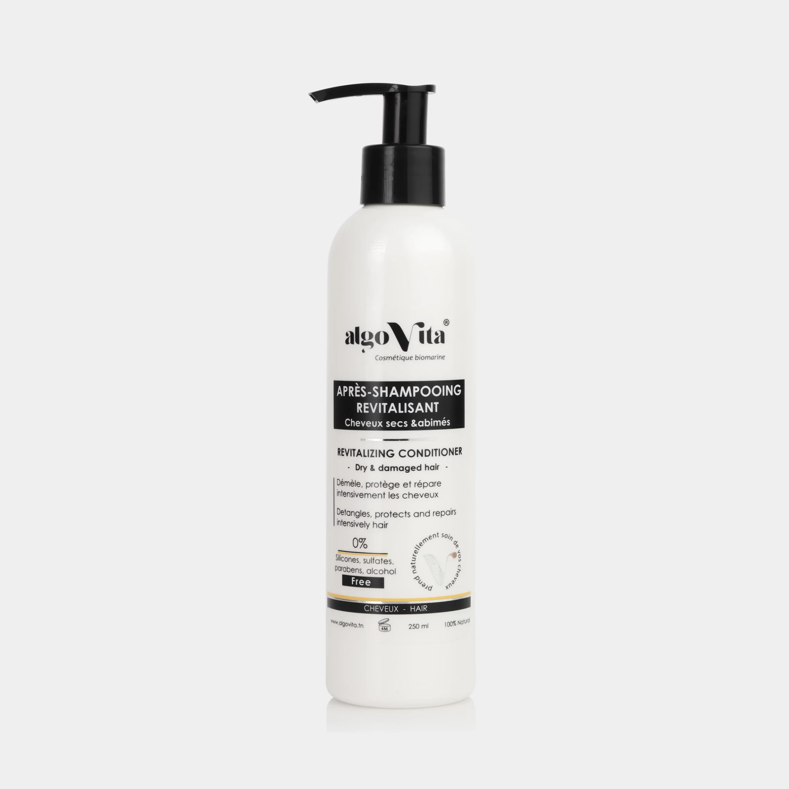 L’après shampoing revitalisant algoVita est un après shampoing destiné aux cheveux secs. Il est utilisé pour démêler, protéger et réparer intensivement les cheveux secs. Volume 250 ml