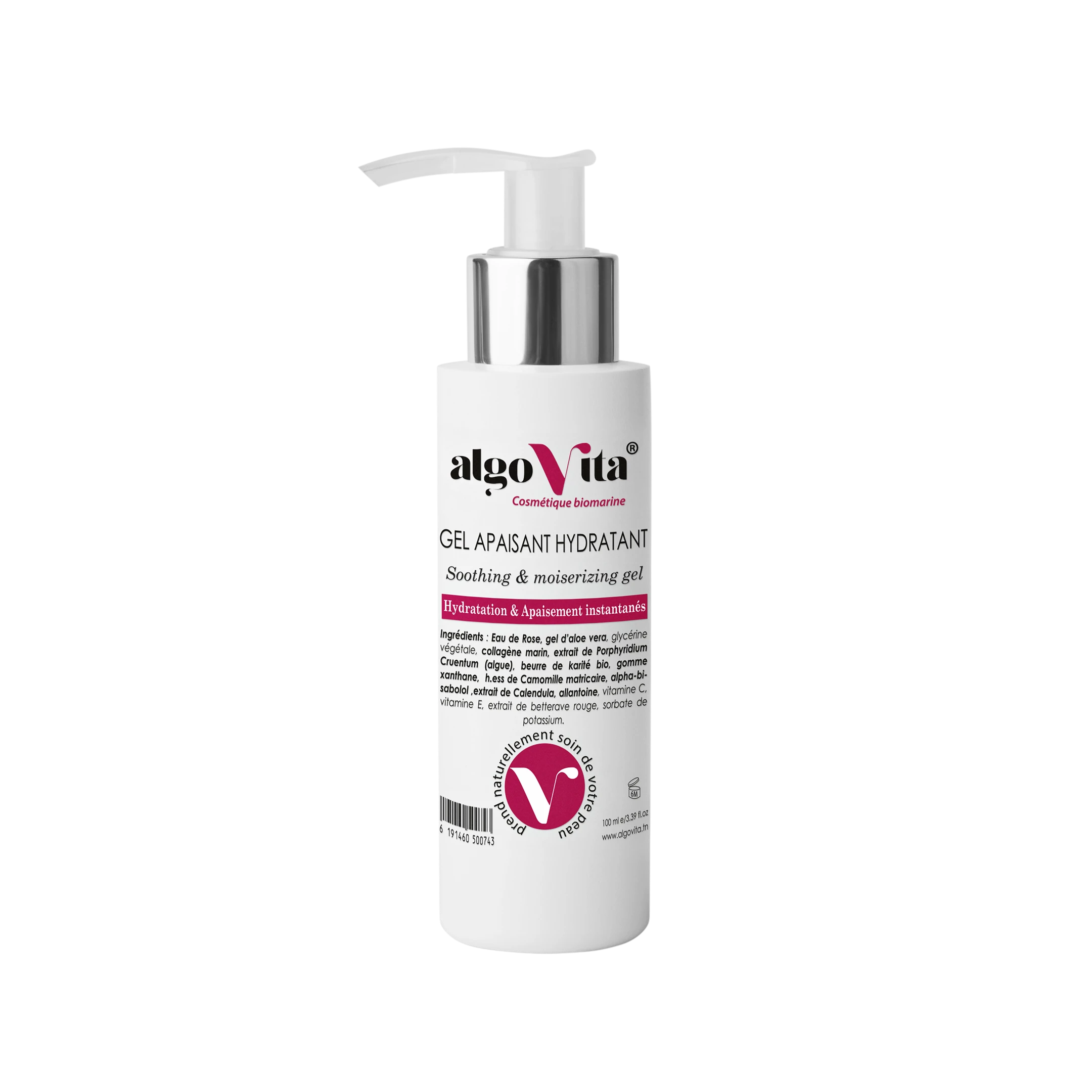 Le gel apaisant hydratant algoVita procure une hydratation intense et longue durée, apaise, et favorise la réparation de la peau. Non gras, il s’applique facilement sur le corps et le visage, sa texture s’étale facilement et pénètre rapidement avec un effet rafraîchissant immédiat. Ce gel est conseillé pour les peaux sèches, sensibles, irritées ou abîmées. Il peut être utilisé aussi pour l’après épilation, afin de diminuer les rougeurs, baisser la température cutanée, réhydrater et favoriser la réparation épidermique. Volume 100 ml