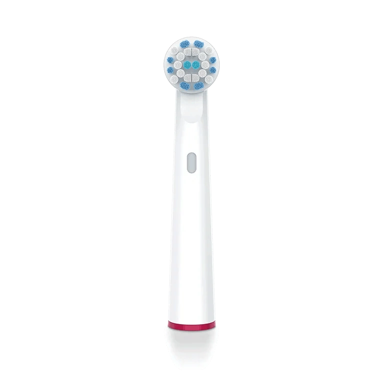 Dotée de deux types de poils différents, notre tête de brosse est conçue pour assurer un nettoyage optimal en offrant à la fois des dents propres et des gencives saines. La diversité des poils garantit une expérience de brossage complète, prenant soin de chaque aspect de votre santé bucco-dentaire.