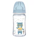 Il est léger, transparent et sa forme particulière offre un confort d’utilisation. L’échelle claire et précise permet une préparation rapide des aliments et la large ouverture facilite le nettoyage du biberon et de la tétine. Le biberon est compatible avec les tire-lait pour bébés Canpol, grâce auxquels le lait tiré peut être immédiatement donné au bébé. Capacité 240 ml.