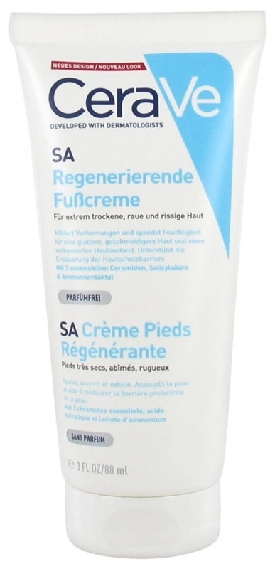 CeraVe SA Crème Pieds Régénérante 88 ml est une crème régénérante pour les pieds très secs, abîmés et rugueux.