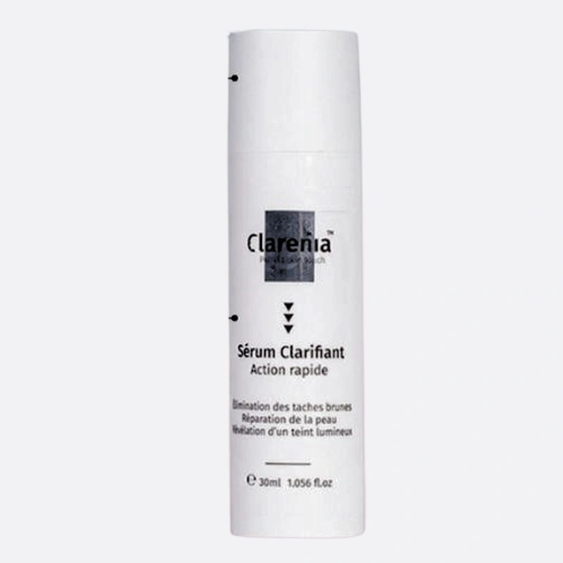 CLARENIA Sérum clarifiant action rapide agit directement à l’origine des taches, pour une action en profondeur. Il unifie ainsi le teint et sublime la peau.