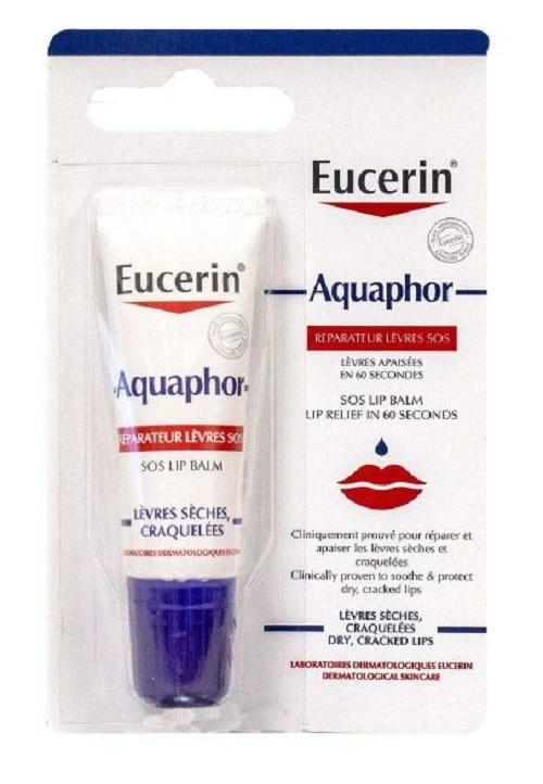 Eucerin Aquaphor Réparateur Lèvres SOS apaise les lèvres en 60 secondes. Il est cliniquement prouvé pour réparer et apaiser les lèvres sèches, craquelées et crée une barrière de protection idéale. Ce baume à lèvres favorise la régénération rapide de la peau des lèvres, pour des lèvres douces et souples. Non parfumé et sans conservateur. Convient aux enfants de trois ans et plus.